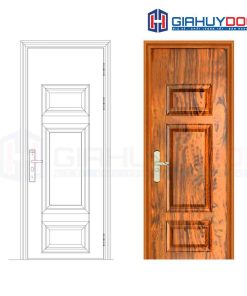 Cửa Thép Vân Gỗ KG-1.08 là loại cửa được làm từ tấm thép có độ dày từ 0,8 mm-1.00mm , là thép cao cấp được sơn tĩnh điện nhằm chống hoen gỉ, trầy xước. Bề mặt cửa được phủ lớp giả vân gỗ giống như gỗ tự nhiên
